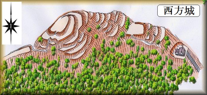 | 天正年間、西方城の城主は東条紀伊守であった。天正8年に長宗我部勢が侵攻してきた際、桑野城主であった関之兵衛は、土佐方に寝返り、西方城を攻撃し、西方城を手中に収めたという。 | |