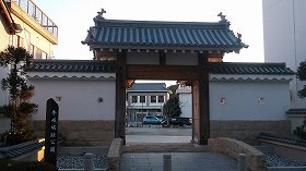 | 牛岐城址公園の様子。正面の高台が1郭である。 | 城址公園に建てられた門。 |