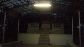 | 夜の1郭。LED電球がたくさん点灯し、恋人たちの聖地と呼ばれているという。しかし、誰もいないなあ・・・。 | |
