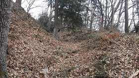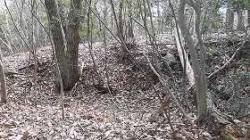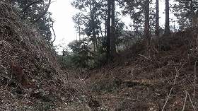 | 1郭側面部の石垣。 | 1郭南側の堀切。 |