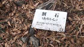 その先が1郭であるが、あまりきちんと平坦化されてはいなかった。さらに中央部に塚状の土壇があるのが目についてくる。これはいったいどういう意味のものなのであろうか。また、1郭の南半分くらいの所には、直径20cmほどの石がたくさん転がっていた。これらの石には案内板も設置されており、そこには「割石」とあった。接近する敵に投石するために郭内部に貯めておいた石ということのようである。確かに城塁部分ではなく、郭の内部に転がっているのだから、石垣の名残などではなく、投石用のものと解釈するのが一般的ということになるだろう。