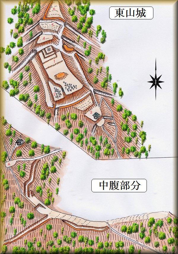東山城はそれほど大規模な山城というわけではないが、コンパクトによくまとまった構造をしている。堀切や折れを伴った横堀など、それなりによく計算して作られている。戦国期のこの地域を代表する山城の1つと言ってもいいものである。