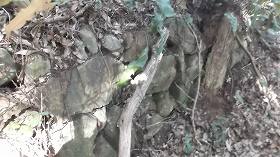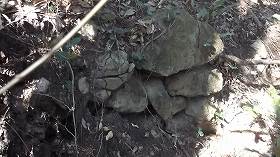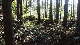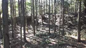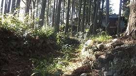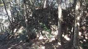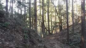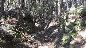 | 1郭南側の横堀。 | 3郭の虎口には石垣が積まれているが、後世のものだろうか。 |