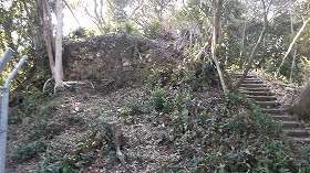 | 2郭から下の観音庵跡を遠望したところ。 | 1郭東側の二段積みの石垣。 |