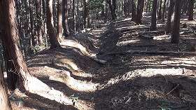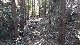 | 吉田山城に向かっていくと最初にお目にかかるのが、尾根の両端を削ったこの部分である。 | 8郭脇の切り通し通路。 |