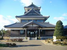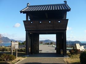 | これが資料館。模擬天守ということになる。 | 入り口にある櫓門。このようなものは、実際に中世城郭にあったのではないだろうか。 |