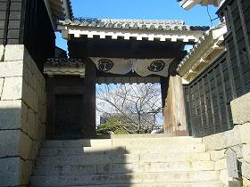 | 天守曲輪への入り口。いくつもの門をくぐらないと天守には到達できないようになっている。 | まず1つ目の門。 |