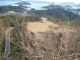 関ヶ原合戦の後、来島氏が当地を去ると、海山城は廃城となったという。以上は現地案内板を参考にして書いたものだが、そこには現在、遺構としては犬走りが見られるだけだという。実際、削平地はあれども、城らしい遺構はほとんど見ることができない。急峻な山の上、つまり天然の要害の地にあるのだから、それほど人工的な造作を必要としなかったということであろうか。それでも、展望台のある所が1郭、その下の公園が2郭、駐車場になっている部分が3郭というように認識できるから、どうしてどうして、それなりの規模の山城といっていいものであった。