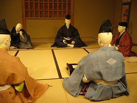 資料館に隣接してすぐに家臣団の屋敷が再現されている。掘っ立ての土間+一間だけの実に質素な建物だが、戦国末期でも、地方豪族の居館というのは、この程度のものだったのかもしれない。