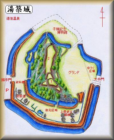 日本最古の温泉として知られている道後温泉の入り口に道後公園があるが、これが湯築城の跡である。松山市といえば、なんといっても松山城が著名であり、整備も進んでいるのだが、同じ市内にあるこの城も復元整備が行われ、資料館が置かれしかも無料で開放されている。観光に有意義な松山城だけでなく、中世城郭の湯築城までもこのように整備・公開しようという姿勢には非常に好感が持てる。