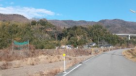 そういう言うわけで、車で城址まで到達するには、徳島自動車道の方から来る道を進んできた方が無難である。こちらからの通であったら、運転していて特に不安を感じることもない。山麓から城址への道をレンタカーのナビに入れたら、ちゃんとその道を案内してくれた。そのルートでの台地への入口はこの辺りであった。