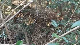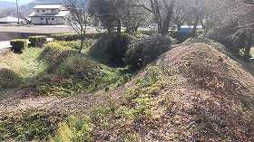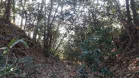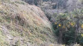 | 井戸の先の下にあった横堀。 | 3郭堀切跡と想定されている辺りの部分。 |