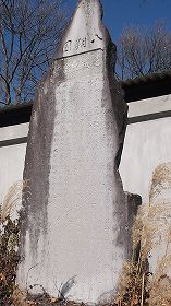 | 1郭北側の堀切。 | 1郭の倉庫裏に建つ記念碑。 |