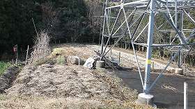 | 2郭には鉄塔が建てられている。 | 1郭北側の鋭い城塁。 |