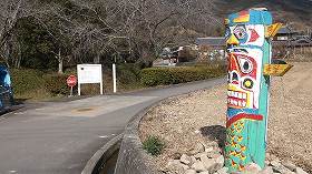このすぐ近くの道路脇には、なぜかトーテムポールも立てられている。こちらの方がはるかに目立つので、これを目印にしていってもよいかと思う。車も、このトーテムポールの脇辺りの路肩が広くなっているので、その辺に駐車させてもらうのがよいと思う。