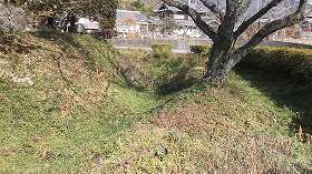 | 内部の北側には石組みのしっかりとした井戸がある。 | 南側の堀は民家となって埋められてしまっている。 |