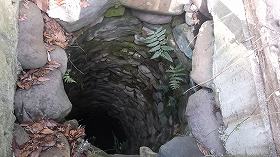 井戸である。見ると石組みのかなりしっかりとしたものである。直径は2mほどもあろうか。それがヤブの合間にポツンと開口しているのである。井戸の周囲にはロープも柵もなく、これは危ない。うっかり進んで行ったら落ちてしまいかねない。そしていったん落ちてしまったら、自力で這い上がることはまず不可能であろう。