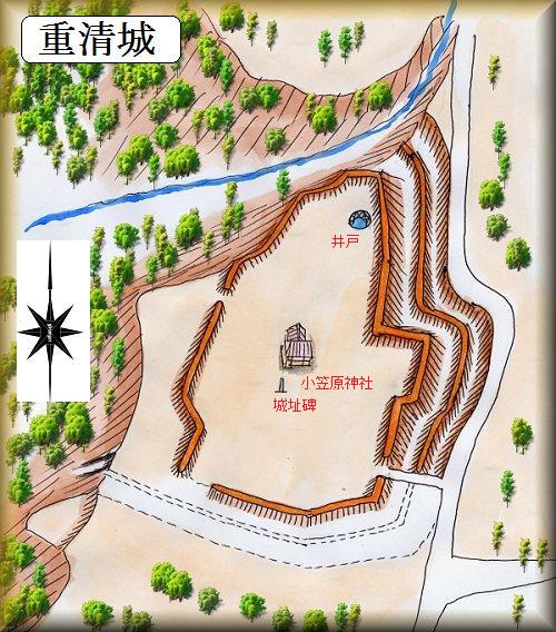 重清城とはまた変わった名称の城であるが、『昔阿波物語』には「重清と申すは城を構えて人数を百ばかり持ちたる侍なり」とあり、最初の城主の名前であったという。しかし、この人物が実在したかも含めて、実際の所どうであったのか。はっきりしたことは分からないのである。