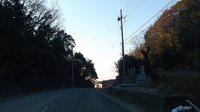 | 南側から遠望した木津城。比高40mほどの山稜である。 | 東の山との間の切り通し道路。 |