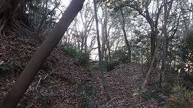 ちなみに、この横堀は北側に回り込むと普通の横堀となっており、西側の尾根部分まで続いてそこで終了している。