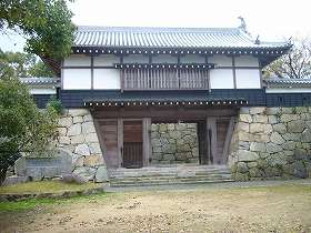 | 本丸の枡形門。門そのものはもちろん模擬である。 | しかし、その門をくぐってみるとこのような枡形になっていた。模擬天守のおまけでこのような枡形まで造ってしまうものなのだろうか。これはひょっとしたら本物なのでは?と見えてしまうのであった。 |