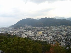 さて、模擬天守はともかくとして、この城もとても景色がよい。四国の城は、町場で、しかも海の近くの独立丘に築かれているものが多いので、どの城も本当に景色がいいのである。それに瀬戸内の海は本当に青いし、そこに浮かんで見える島々も風光明媚である。こうした風景を見られるだけで来る価値があるのかもしれない。