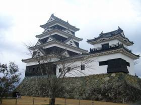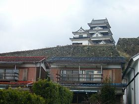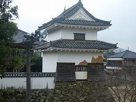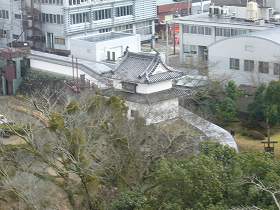もともと櫓が4基残ったわけなのであるが、櫓4期が残っているというのと、天守も存在しているというのとでは印象はぜんぜん違ってしまう。以前は、鉄橋から見ると、ちっこい櫓がちょこっと見えるだけで、いかにもぱっとしない城という印象であったのだが、天守が建っただけで、現在ではそうとう遠くからでも城らしい城として遠望することができる。そう考えると、天守の存在というのがいかに城にとって大きいものであるかがよく分かる。