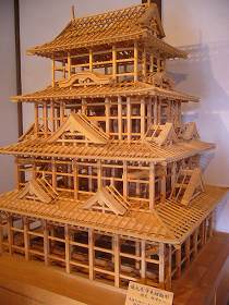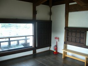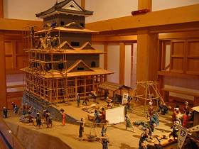 | 天守の建築ジオラマ。こんな風に造っていたのかあ。重機もない時代、大変な工事だったんだろうなあ。 | 重要文化財の高欄櫓の内部。文字通り高欄が付いている。 |