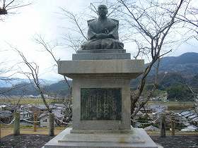 | 奥御殿の上の段にある中江藤樹像。藤樹宅跡は、大洲高校の西側にある。 | 大洲高校の脇に残る三の丸の南隅櫓。壁が一部剥げ落ちてしまっている。 |