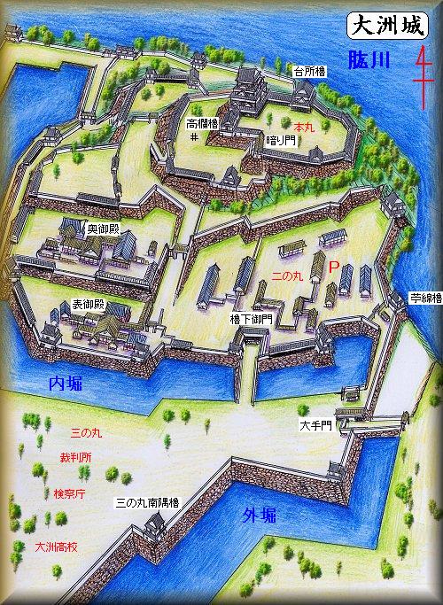 現在、奥御殿、表御殿の部分が住宅地、二の丸が市民会館や城址駐車場、三の丸が裁判所や大洲高校になっていたりするが、本丸を中心とした部分は往時のままであるといっていい。