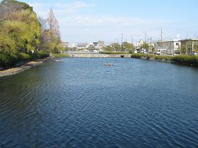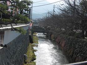 西条市内には何本もの川が流れており、「水の都」とも呼ばれているそうだが、西条陣屋の堀もそうした川の1つを利用したものである。堀に続く南側の川にも、石垣や土塀などが築かれて、それらしい雰囲気を醸し出している。