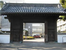 | 西条陣屋東側の堀。幅40mほどもある。 | 西条高校入口に残る大手門。 |
