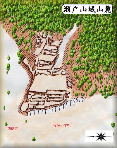 以下、山城攻城記より引用 出雲、石見、備後国の境界に位置する。出雲国へ、天文十一年(1542)に大内義隆、永禄五年(1562)には毛利元就が攻め込んだ時の主戦場として 知られる。 赤名氏歴代の居城とされるが、現在残る遺構は近世初頭の総石垣の城郭である。 主郭は最高所と考えられるが、石垣は「破城」によって破壊されている。特に街道に面した石垣は完璧に破壊されており、根石も確認出来ない。 その他の面は石垣のコーナー部が数か所確認出来る。 主郭の南方に連なる郭にも石垣が築かれているが、これらは上部の破壊にとどもあっている。 虎口は数カ所で確認出来、特に主郭南側の虎口は城門がたてられていたものと考えられ、敷石が残存する。 城域の端の方に普請の不十分な遺構を見ることが出来るが、これは改修強化の際、城外として放棄されたもので、赤名氏の時代の遺構とも考えられる。 麓の小学校敷地は居館の跡と考えられる。 最終改修者は堀尾氏と考えられ、現集落の各所に近い近世城下町の痕跡を見ることが出来る 島根県教育委員会『島根県中近世城館跡分布調査報告書』より引用 歴史 1337年頃 赤穴常連によって築城が開始され、歴代の赤穴氏の居城となる 1542年 大内義隆率いる四万の出雲遠征軍(陶氏、毛利氏ら)に包囲される 尼子、赤穴連合軍は神戸川を堰き止め、城下を湖水化し、籠城を挑んだ が結局敗れて開城する 1563年 広瀬月山富田城(尼子氏)攻略を企てる毛利元就が赤名へ侵攻。 瀬戸山城(赤穴氏)は毛利軍が布陣した武名ケ平城と対峙。赤穴氏は後に毛利氏に属する 1600年 関ケ原の戦いの後、松田左近将監吉久は、堀尾吉晴から瀬戸山城を賜る。 吉は城番として入城し、石垣と天守閣をもった近世城郭への改修と城下町赤名の移設を行う 1615年以降 一国一城令の発令後も城番が派遣されていたが、しばらくして廃城となる。 「破城」と称し、堀を埋め、石垣を壊すなど意図的な城郭機能の破壊が行われた |