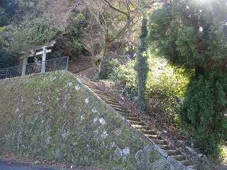 北側の山麓下に神社の参道がある。ここには駐車できるスペースもあるので、車をそこに停めて神社まで登って行った。