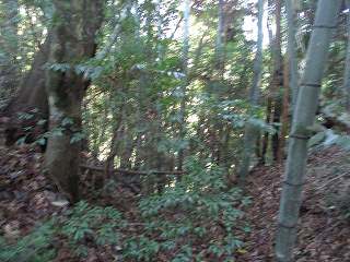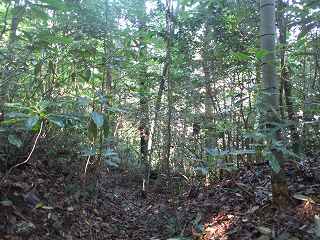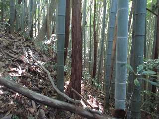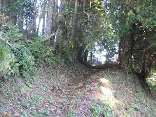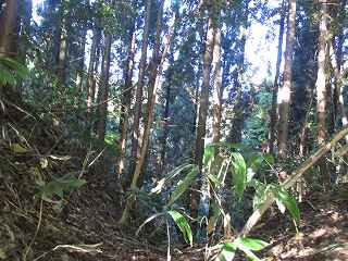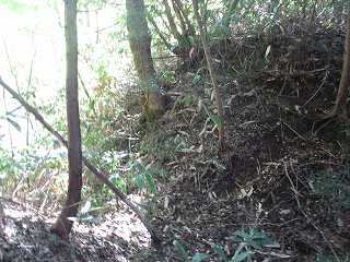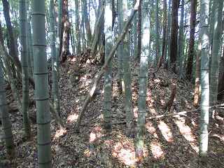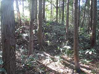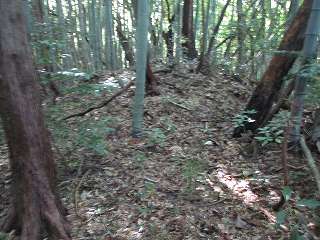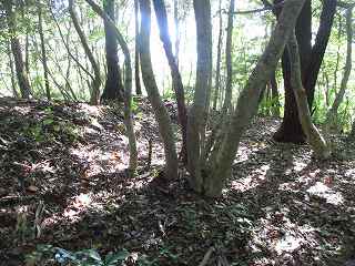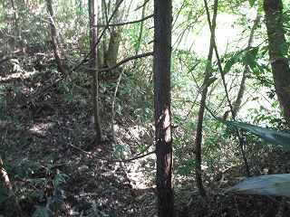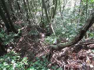 それを越えると傾斜地形の登りで途中にわずかな溝が見られる。その先にも堀切がある。尾根続きは二重の堀切で防御を固めていたようである。