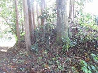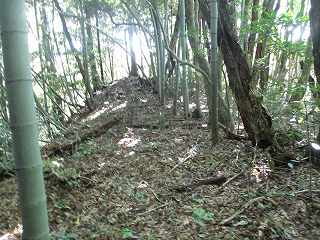 土壇。 | 背後の切通しは堀切の跡であろう。 |