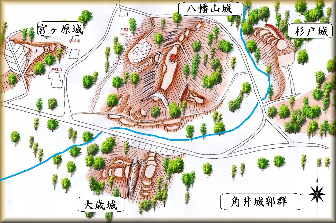 このように角井城館群を構成する城は、どれも大規模なものではないが、これらが有機的にリンクすることによって、地域防衛を果たそうとしていたのだと考えられる。