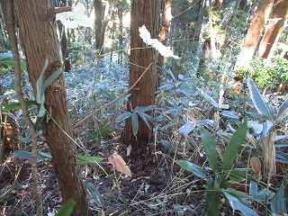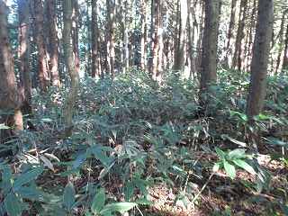 背後の高台部分を進んで行く。その先は笹薮なのだが、それを突っ切って行く。
