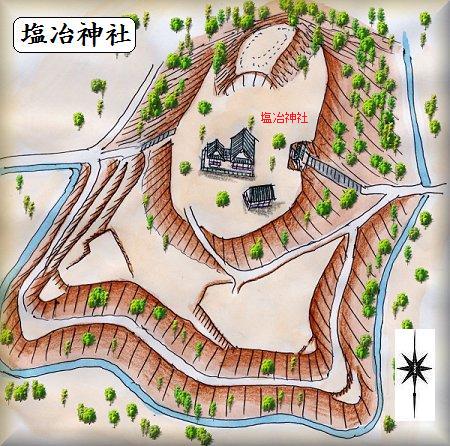 この城跡は上塩冶に所在する大廻城跡や大井谷城跡よりも規模が広く近くに塩冶八幡宮や高貞社があるので、城主は代々の塩冶氏であったと 考えられます。 出雲国守護としての塩冶氏は約六十年高貞の弟時綱からの後、塩冶氏は尼子経久に滅ぼされるまで約百九十年続きさらに尼子興久が塩冶氏を名乗っていますからこの城郭も幾度か改修されたと考えられます。 昭和五十三年に西一郭が発掘調査されて土塁、柵跡、土壙などが検出されました。 城郭全体の遺構 主郭部は一辺二十五メートルの方形 北に郭二 東に郭三 西と南に郭各二 土塁 堀切り 帯曲輪を設けている