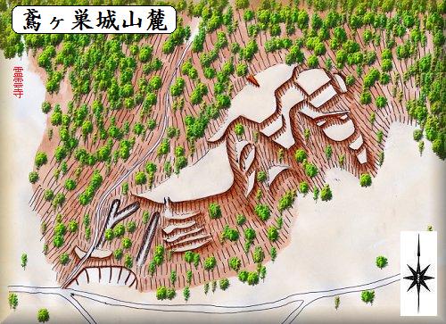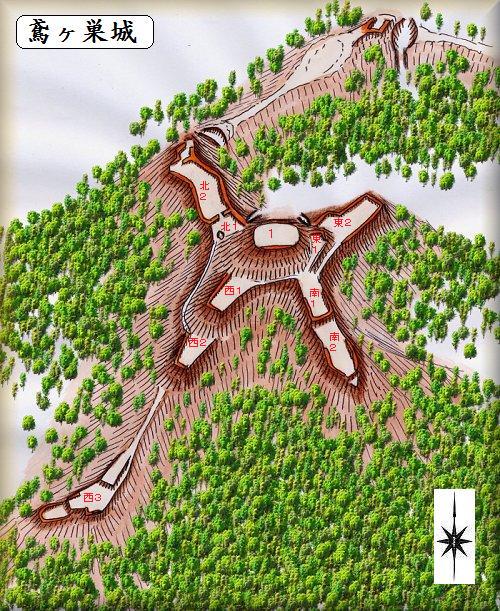 この山頂郭群とは別に、標高50メートルの南方山麓に広大な面積を有する山麓郭群が存在する。