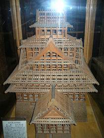 松江城天守の木組模型。 | 天守から本丸内部を見たところ。 |