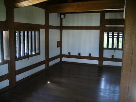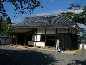 同じく復元された中櫓。これも単層だ。 | そして南櫓。こちらは二層構造である。櫓とやぐらの間は土塀で接続されているのだが、この土塀、外側には下見板張りを張ってあるのに、内側は白壁のままである。防御的には逆にしたほうが火に強く、有利だと思われるのだが・・・・。 |