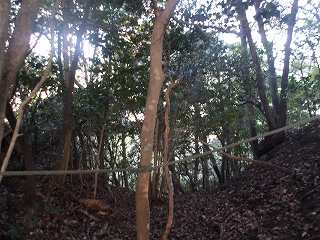 それでも進んで行けば途中からロープが張られているので、それが登城道なのだということが理解できる。