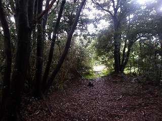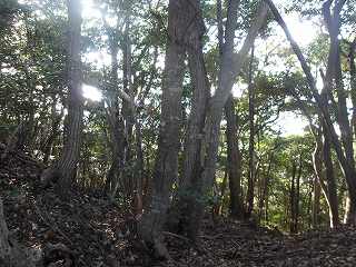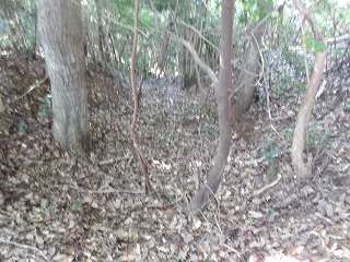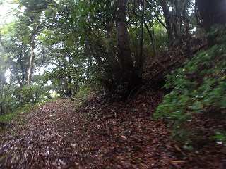 尾根上に出て西側に進んで行くと、確かに堀切が存在している。ただし途中の尾根は自然地形のままである。