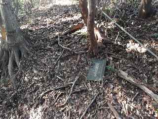 後で地形図を見て気が付いたのだが、北側の道路からなら比高20mほどで簡単に登れそうである。北側から登った方が到達しやすいかもしれない。