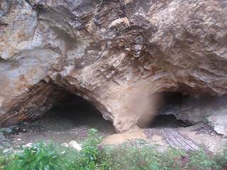 道路沿いの海側に車を停められそうなスペースがあったので、そこに車を停めて、洞窟住居遺跡の案内の所から奥に入って行く。