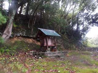 すると尾根に到達した。そこから東側に進んで行くと3郭の脇を通って2郭に到達した。ここに神社が祀られている。