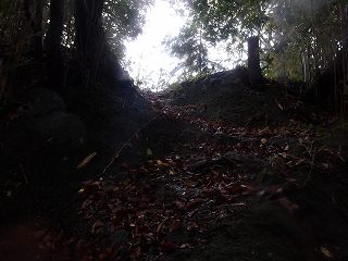 かつて城内を整備してロープを張ったのだと思われるが、現在では訪れる人も少ないようで、登城道はけっこう荒れてしまっている感じである。