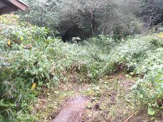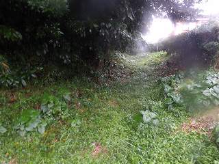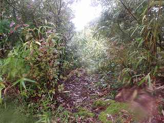 雨が降っていたが、これなら何とか傘を差して登って行けそうである。途中ヤブになっている個所もあるが、薮をかいくぐりながら参道を登って行く。