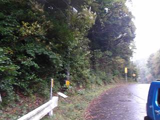この日は土砂降りであったが、車道が付けられているのなら分岐点から山頂まで傘を差しながら行けるであろう、そう思って北側の道から林道に入り込んで行こうとした。